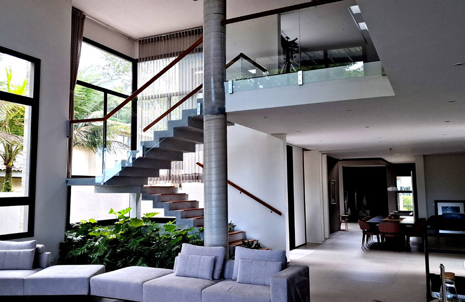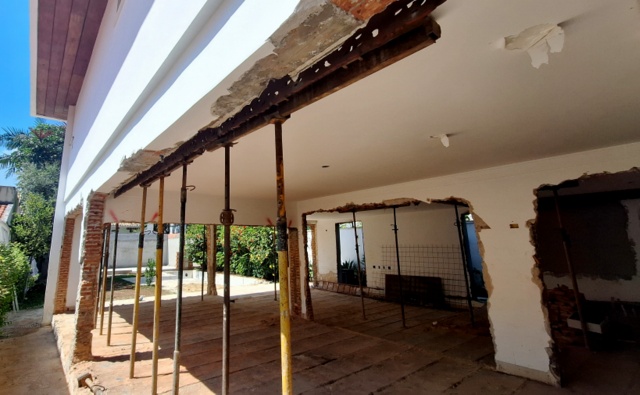 Casa de alto padrão próximo ao Ibirapuera, Reforma radical com retirada de pilares e paredes internas, escavação completa do subsolo e reestruturação com estrutura metálica, resultando grande aumento de área e valorização do imóvel. Projeto estrutural, logística e acompanhamento da solução estrutural da Abacus