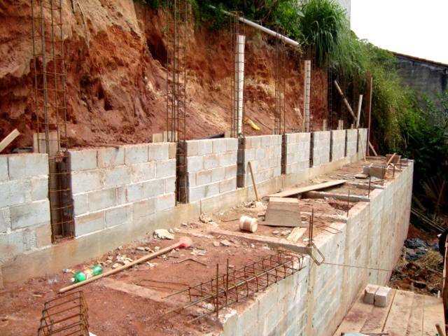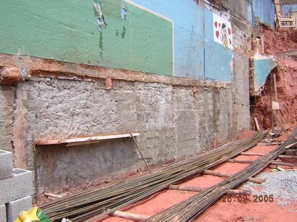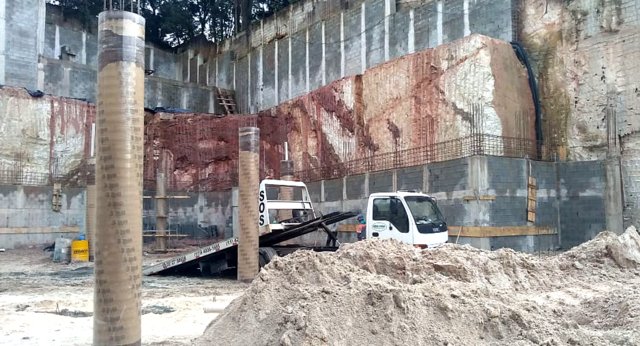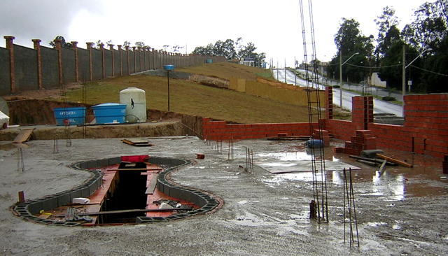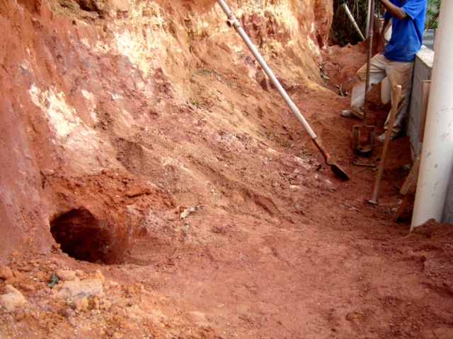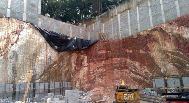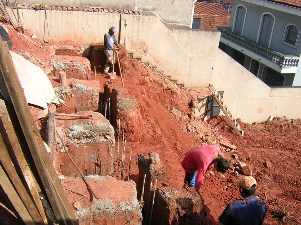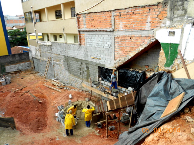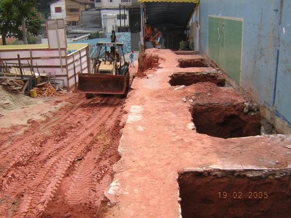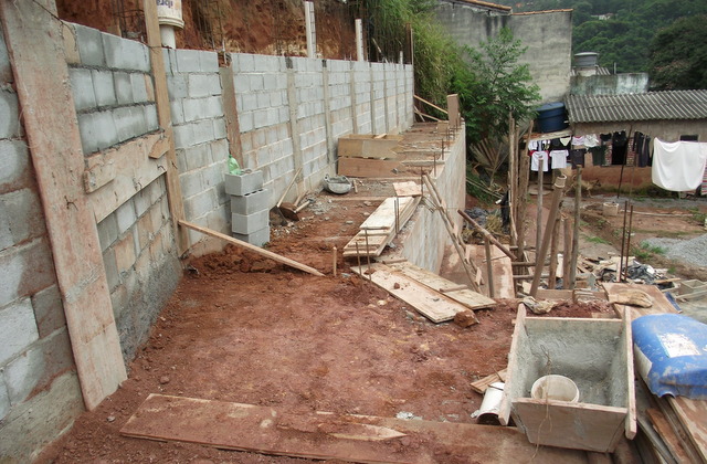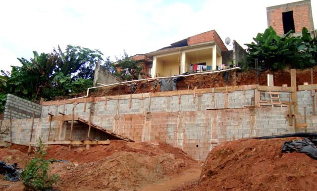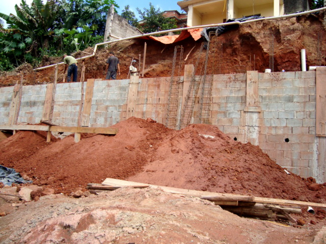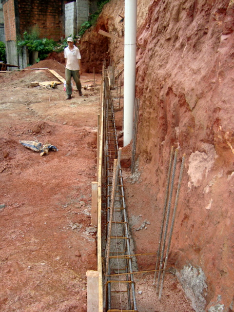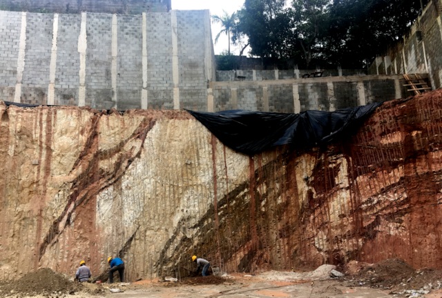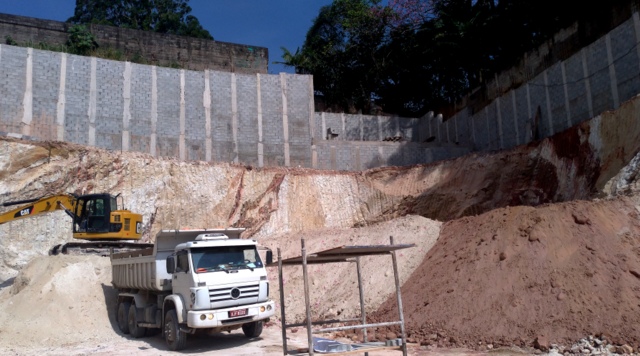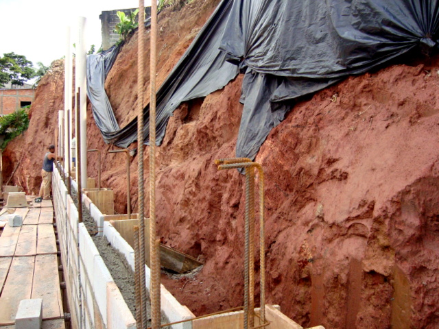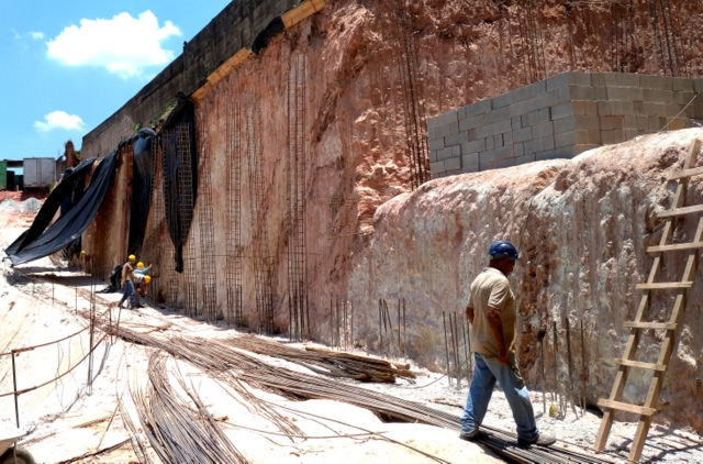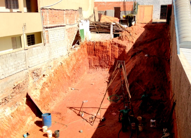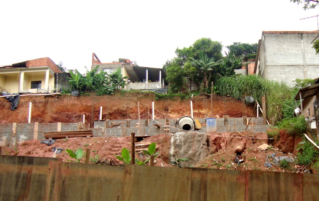 Obra de risco com grande retirada de terra e necessidade de arrimos.