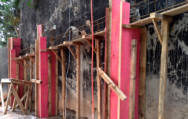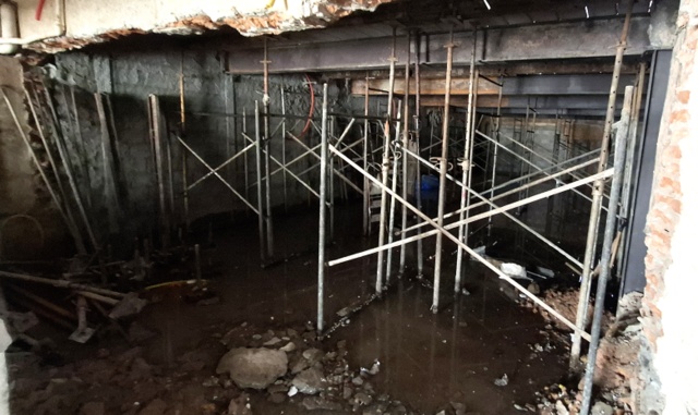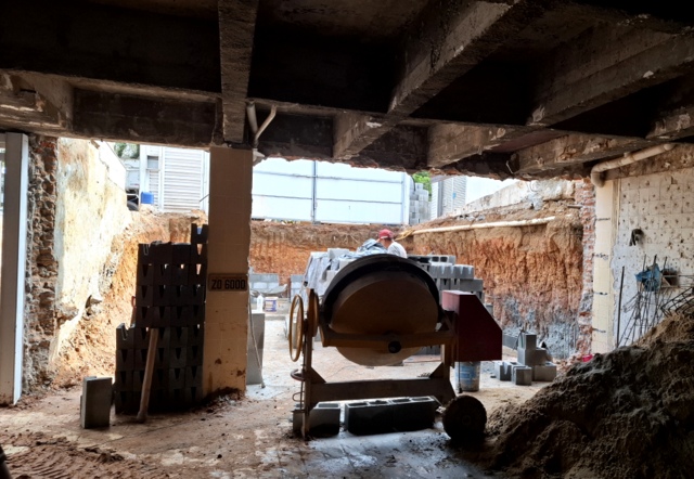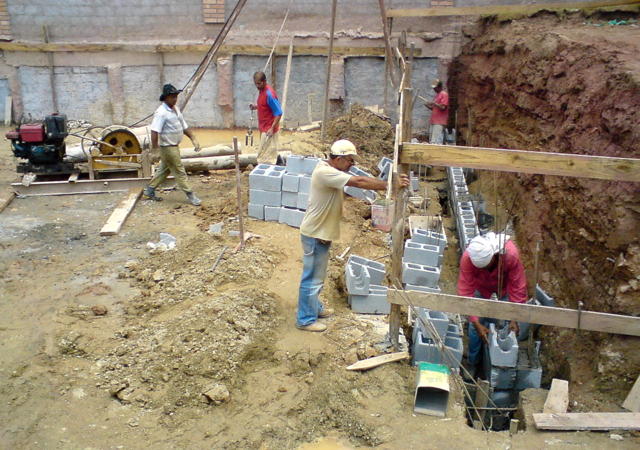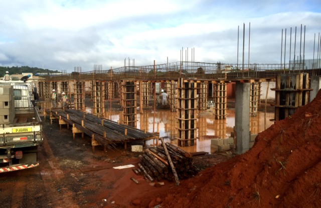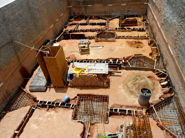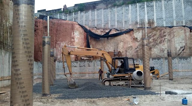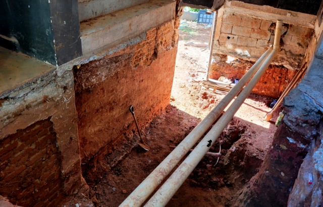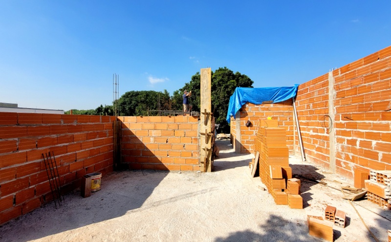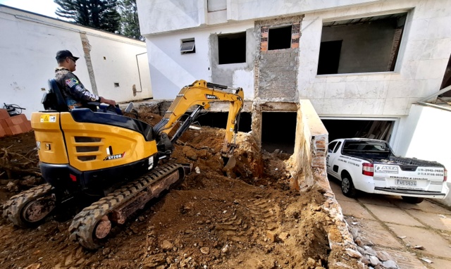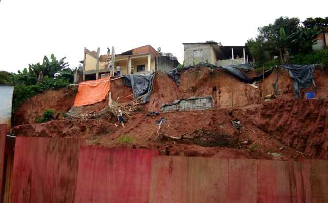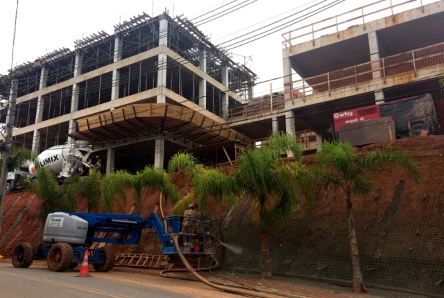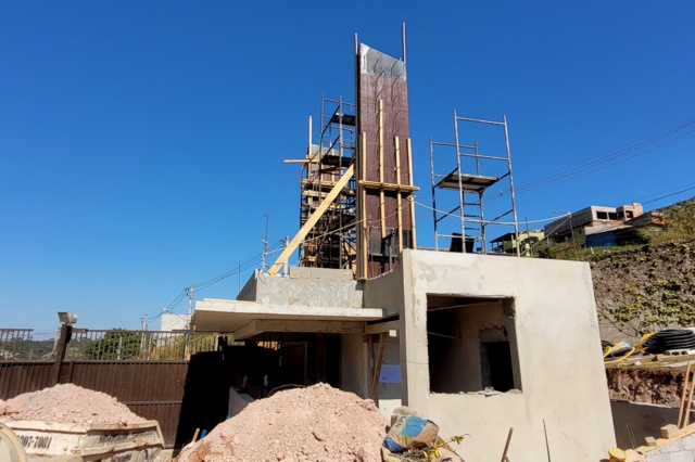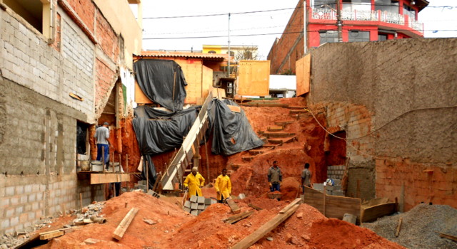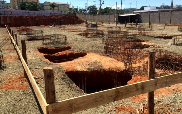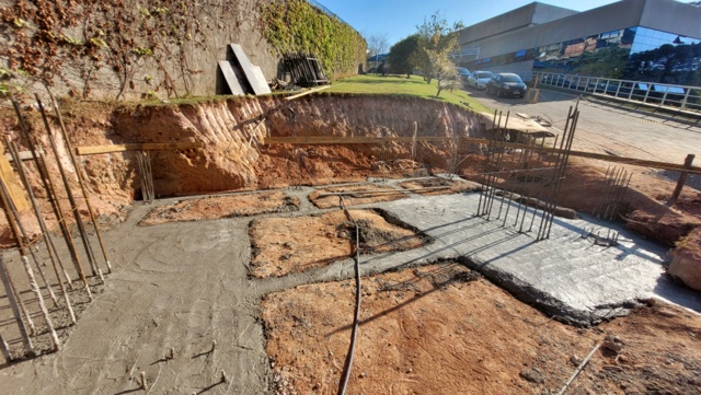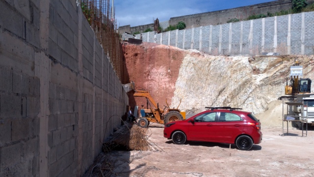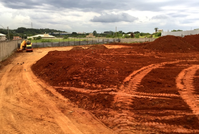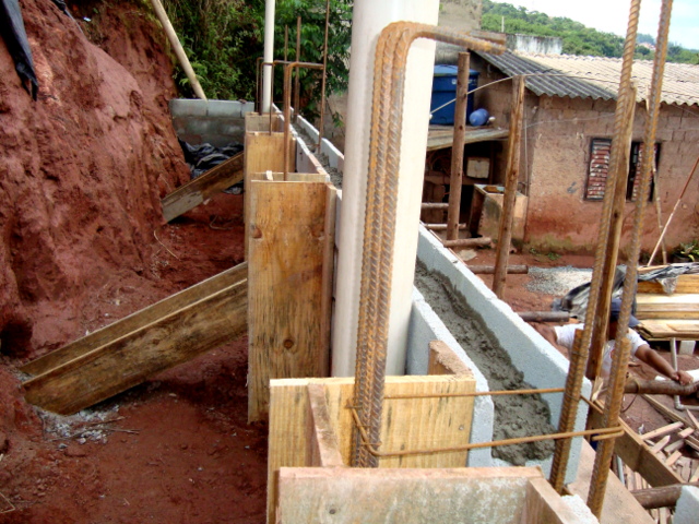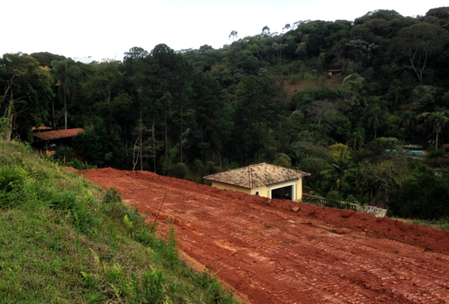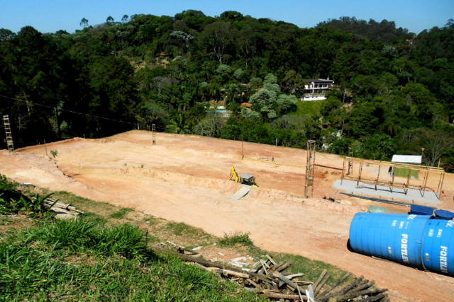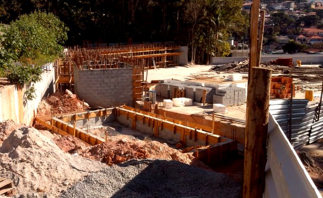 Obra de risco com grande retirada de terra e necessidade de arrimos.