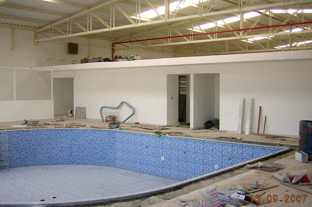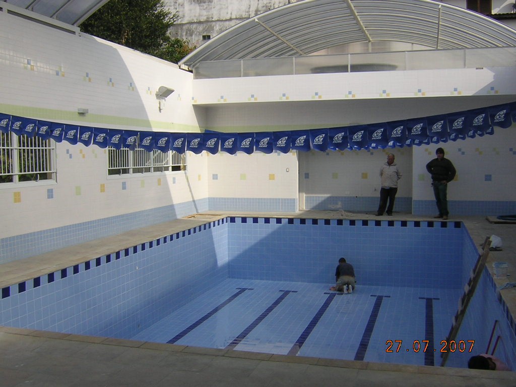 Piscina na cobertura com teto retrátil.