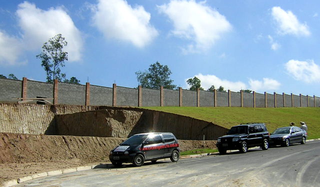Arrimo de 12 m de altura proximo a via de tráfego pesado, próximo à Rodovia Raposo Tavares = Granja Vianna – Cotia
